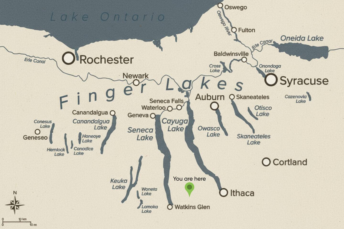 Located between Watkins Glen and Ithaca, The Kimberly Retreat is the perfect place to return to after exploring the Finger Lakes Region. The retreat is right between Cayuga and Seneca Lake, so whether you're looking to visit local wineries, explore waterfalls or tour one of the Finger Lakes- all are just a short drive away.